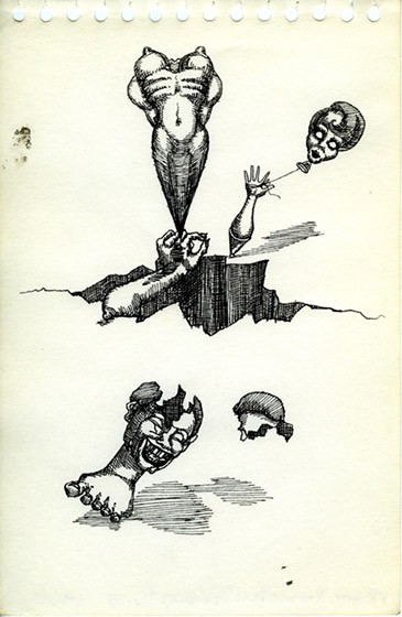 Rapidograph and/or pencil on paper, each 8½ x 5½" (21.5 x 14 cm). Detail: #16 of 35, India ink and