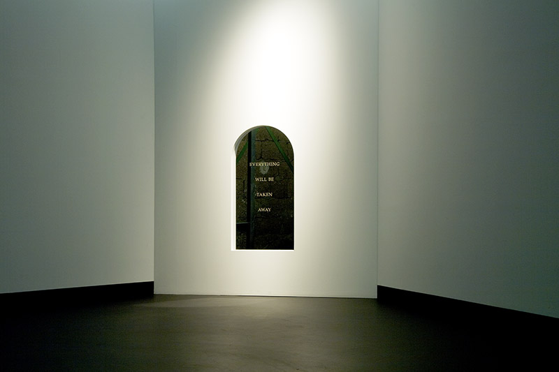 2004. Plexiglas wall corner insert engraved with gold leaf text, 24 " x 48" (61 cm x 121.9 cm). #08037.2. Photo credit: Andrej Glusgold. Collection of the Adrian Piper Research Archive Foundation Berlin. © APRA Foundation Berlin.